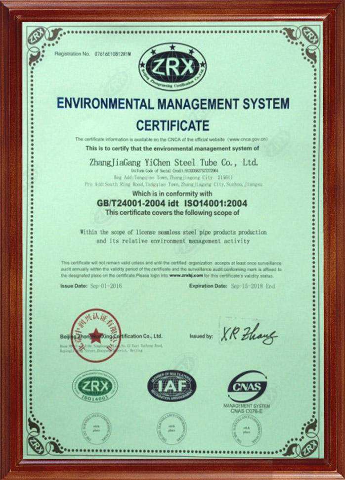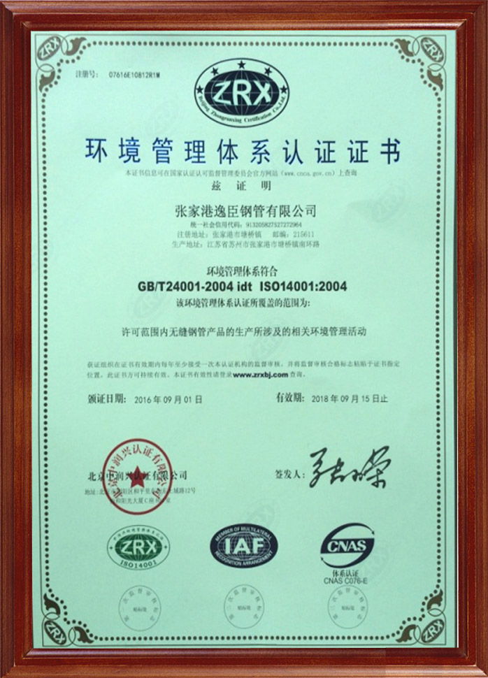 環(huán)境管理體系認證證書